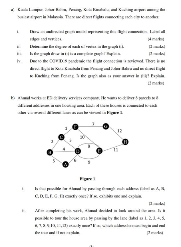 Solved A Kuala Lumpur Johor Bahru Penang Kota Kinabalu Chegg Com